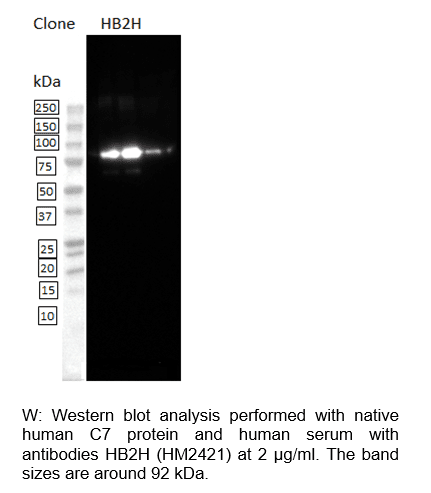 Antibody HM2421 clone HB2H recognizes human complement C7 in its native form.
